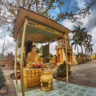 Nachdem unser Riverboat für die Nacht mitten auf dem Mekong kurz vor My Tho geankert hatte, hieß es 5:30 hieß es Abfahrt. Nachdem ich fast aus meinem Bett gefallen wäre, als der Anker eingeholt wurde, drehte ich mich nochmal auf die andere Seite und genehmigte mir noch eine Mütze Schlaf. 8:30 holte uns ein kleineres Boot ab, um uns zum Hafen von My Tho zu bringen. Wir besuchten einen wunderschönen und beeindruckenden buddhistischen Tempel - Vinh Trang Pagoda.