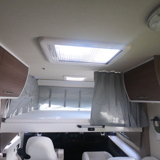 Falls man dann doch müde wird ist über der Fahrerkabine direkt ein Hubbett versteckt. Durch einfaches Herunterziehen wird hier ein gemütliches Bett für 2 Personen draus.